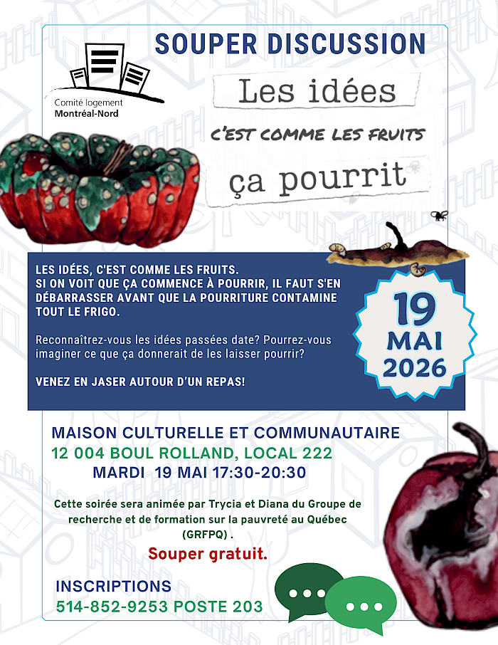 LES IDÉES, C'EST COMME LES FRUITS. SI ON VOIT QUE ÇA COMMENCE À POURRIR, IL FAUT S'EN DÉBARRASSER AVANT QUE LA POURRITURE CONTAMINE TOUT LE FRIGO. Reconnaîtrez-vous les idées passées date? Pourrez-vous imaginer ce que ça donnerait de les laisser pourrir? VENEZ EN JASER AUTOUR D’UN REPAS!